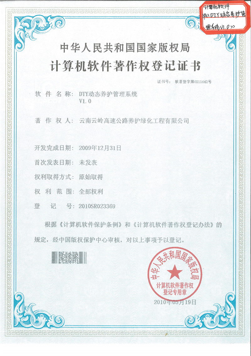 《DTY動(dòng)態(tài)養(yǎng)護(hù)管理系統(tǒng)V1.0》