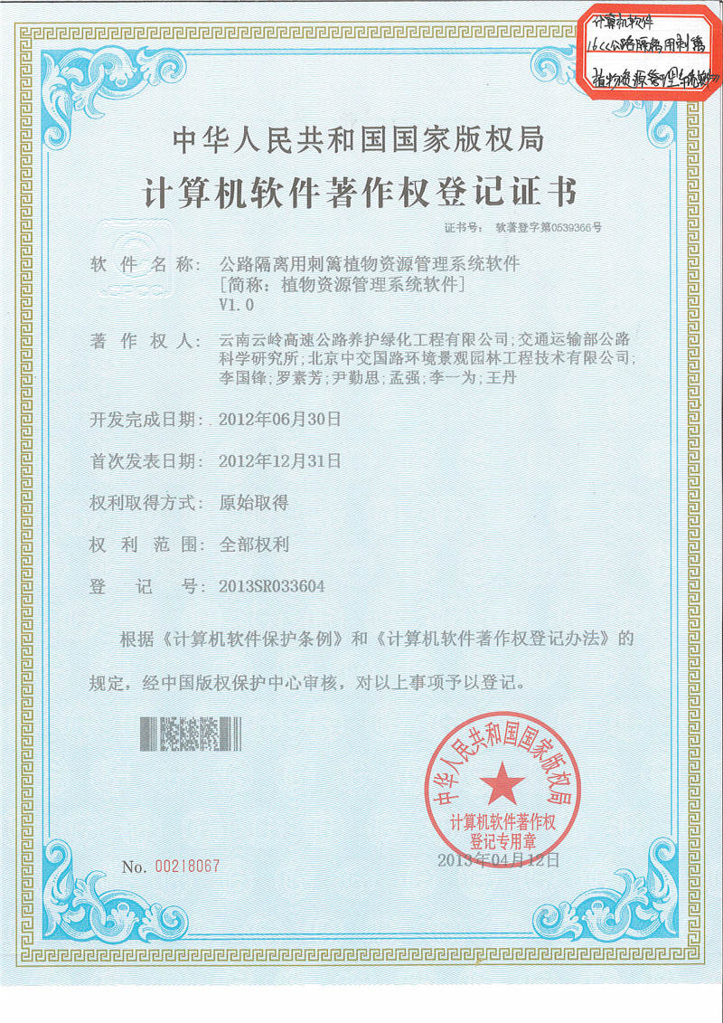 《公路隔離用刺籬植物資源管理系統(tǒng)軟件》