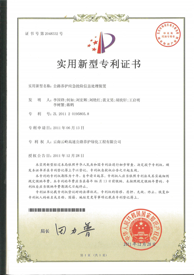 公路養(yǎng)護(hù)應(yīng)急搶險(xiǎn)信息處理裝置